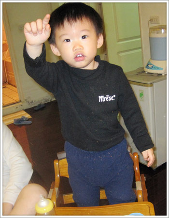 爸比會不會太誇張,兒子都站起來了還沒發現。