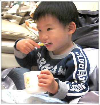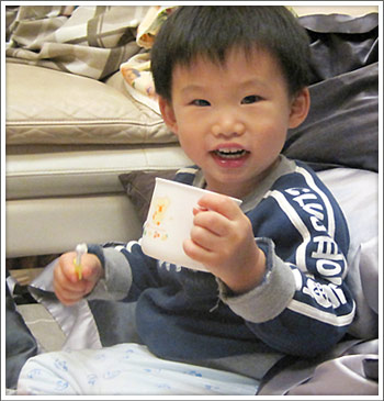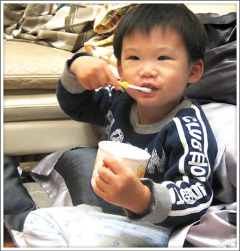 媽咪在洗澡時,如果寬寬一哭,爸比的法寶就是給吃,只要把小孩的嘴堵住,他就能繼續玩電腦。