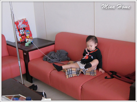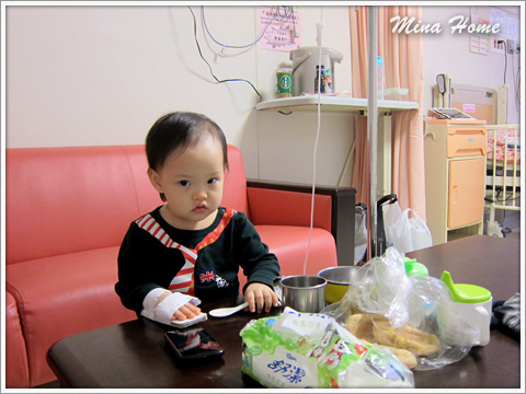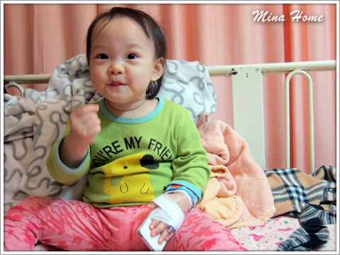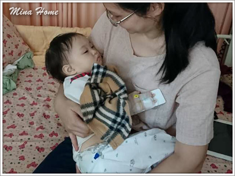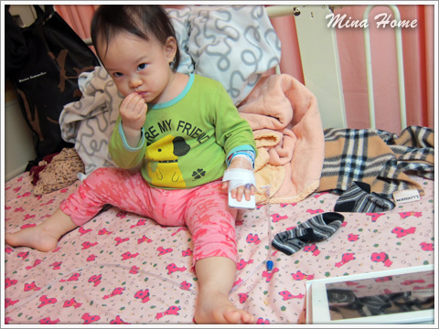 確定要住院後,醫生馬上給小妹打點滴打抗生素,也馬上塞肛門退燒劑,接著就是辦住院手續和等病房,然後打電話給婆婆,還好婆婆答應馬上趕過來,再打給老公看能不能提早回來支援,再打給寶貝的阿姨,請她先準備好小妹住院需要的物品,等我婆婆一到就送來給我。