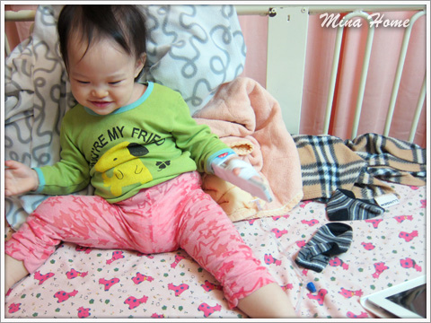 前一天回家洗澡,特地帶來小妹最愛的玩具,果然小妹一玩就好開心。