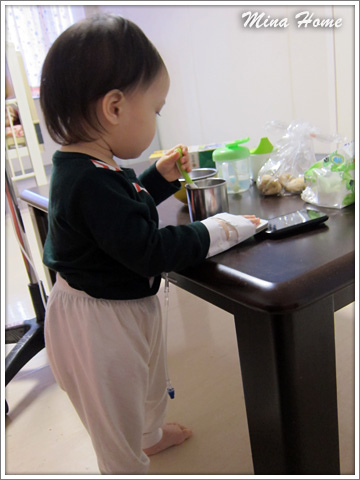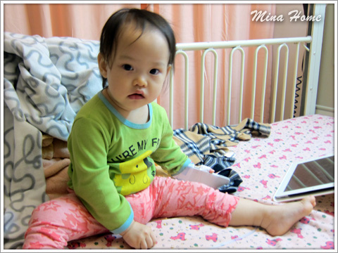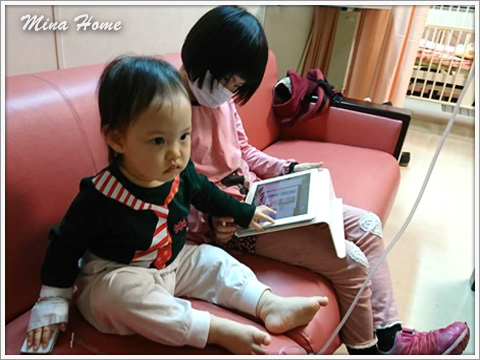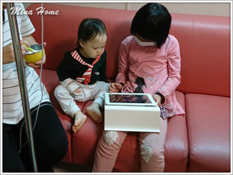 打了兩天抗生素,小五妹精神好多了,給她玩iPad打發時間。