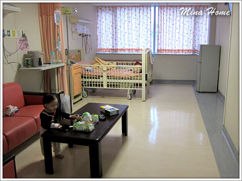 完全退燒的小妹精神大好,開始下床亂走,所以這天換到單人房也好,有空間讓她活動又不會影響別人。