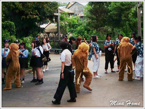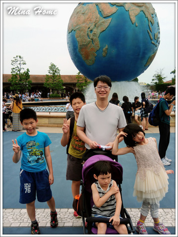 早上出門是陰天,本來還覺得不錯,沒想到後來卻下雨,真是什麼天氣都遇到了。我們依舊是睡晚了,進園時已經九點多,先跟地標合照吧!