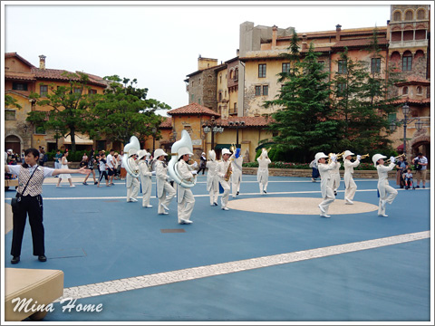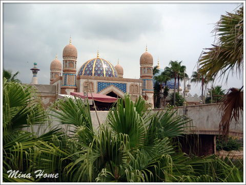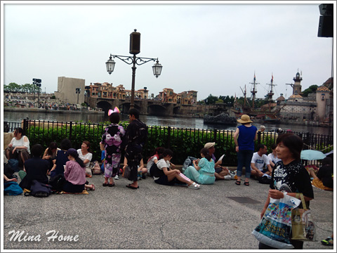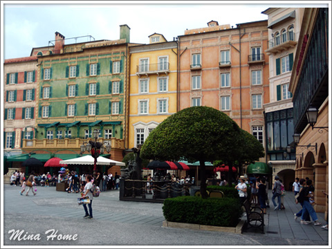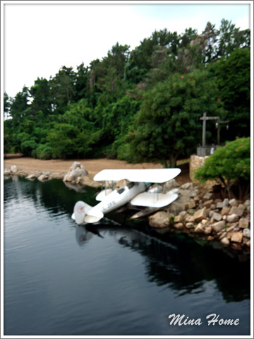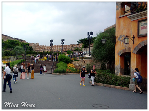 經過地中海區,岸邊聚集一些人,還有工作人員站崗,我想起應該是在等9:30的表演,我們時間不多,先去玩設施。