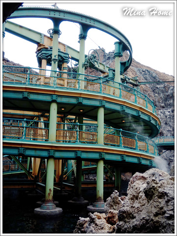 首先看到一個抽FP的地方,上面秀等待時間是10分鐘,老公說直接排隊玩就好了,從入口進去一直往下走,走了好久,感覺深入地下,到底後又等了好久,我這才想到這是"海底兩萬里",應該先去抽"地心探險"的FP再過來排隊。
