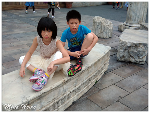 回頭拍滿滿是人又很美的地中海區,這麼美的地方真該早點來才對。(左下角大哥很辛苦的推推車,推車上坐的是小四,所以小五就掛在辛苦拍照的媽媽身上啦!)
