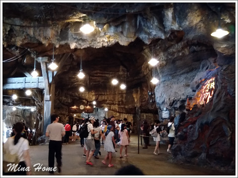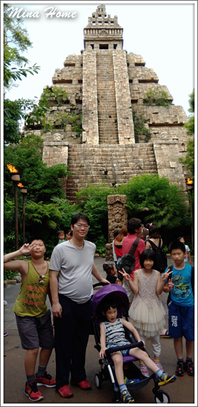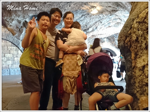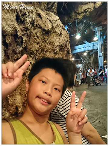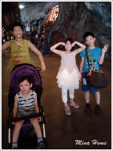 離開神祕島有兩個洞穴,一個通往發現港,一個通往美人魚礁湖,本來是想先去美人魚礁湖,過了洞穴才發現走錯了,是人山人海的發現港,於是沿路逛著走著,繞了一圈來到"小胖的雲霄飛車",媽咪顧小五在外面等,老公帶其它小孩去排隊玩。