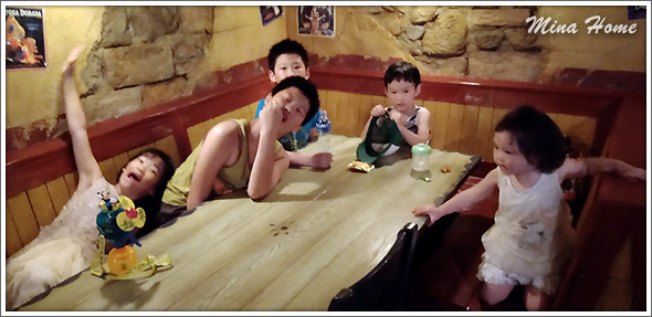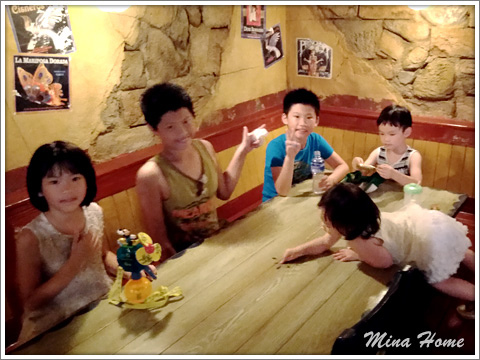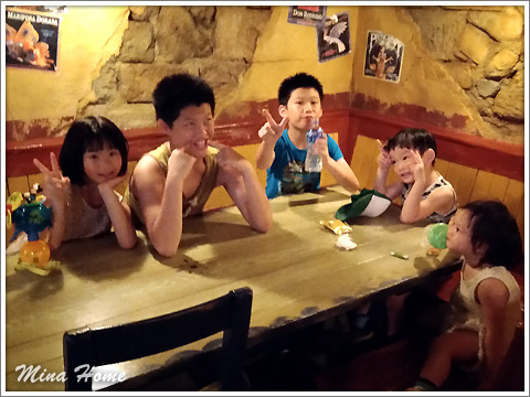 老公去點餐時,幫寶貝們拍照,好像只有在餐廳才能拍到五人合照。
