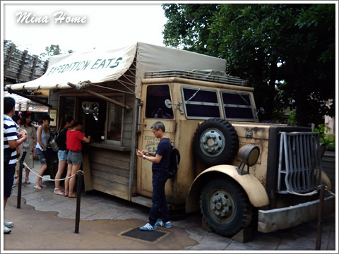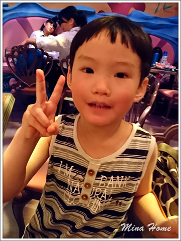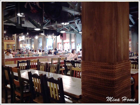 看完表演我們又來覓食了,就在隔壁的賽巴斯丁加力騷廚房,不過這餐廳門口站了個工作人員,必需點了餐端著餐點才能入座,可能是怕沒點餐的人去占著座位吧!(老公去排隊點餐,我帶了一群小孩只能讓他們坐在路邊等,又要追不時亂跑的小五妹,雖然理解園方作法但心情還是不大高興)