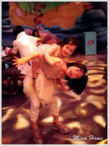 吃飽後姊姊陪小妹在餐廳內散步,直到玩魔宮傳奇的時間快到才離開。