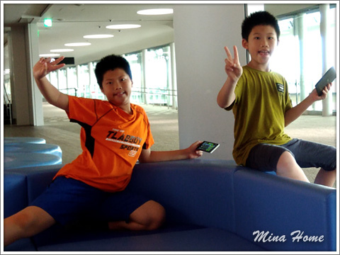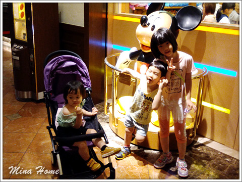 早上退房又搞一個烏龍,我們到二樓還了房卡後,二哥突然想到他們的大隻維尼忘了帶,老公急忙再去櫃台借房卡上樓拿,等的時間媽咪再多拍了幾張照留念。