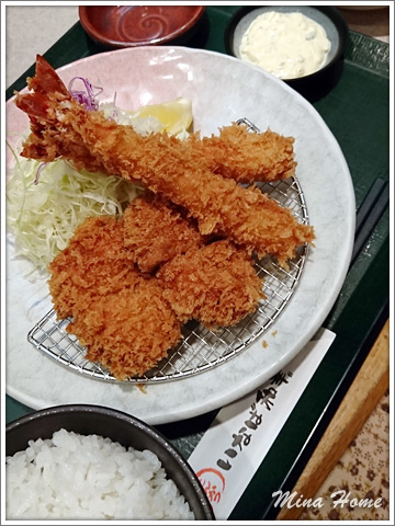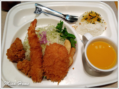 接著坐電梯到四樓覓食,原本有點想吃壽司,這次來日本還沒吃到壽司有點怪,到了壽司田門口,發現裡面的座位很小,我們一家七口要分開坐,就改吃對面的和幸,是間炸豬排名店。