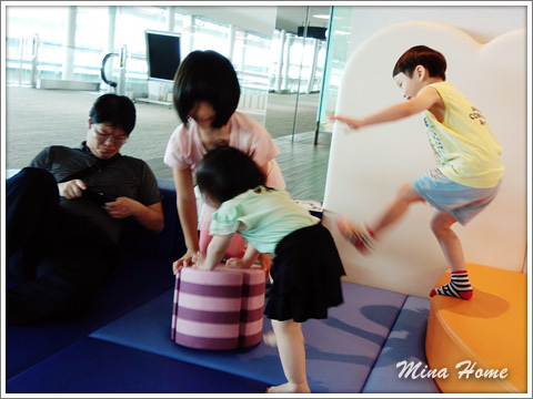 辦理好手續時間還很多,印象中有網誌提到成田機場有兒童遊戲區,找地圖看真的有,雖然沒什麼遊樂設施,但有個空間讓小孩活動,我們也能坐在一旁休息。