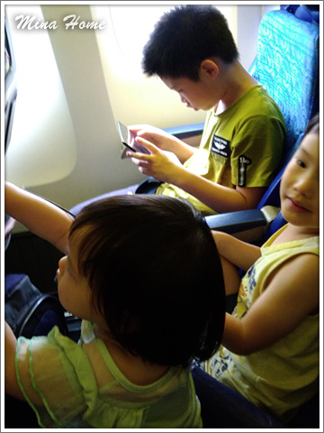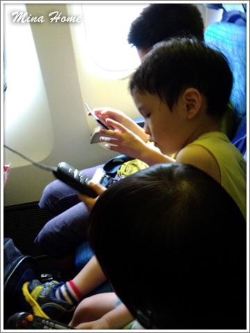 快到登機時間,該是回家的時候,回程讓姊姊、大哥和爸比坐一起,因為姊姊難免要稍微照顧,媽咪忙不過來,讓二哥過來跟小四坐一起,也能幫忙顧小四。
